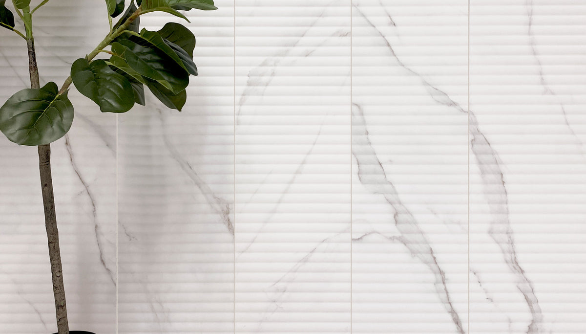 INTRODUCING Thomas a ceramic wall tile that has a beautiful ribbed marble look.