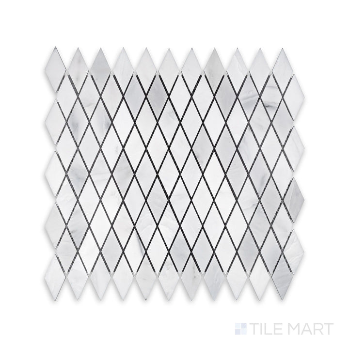 The Marble Oriental White Mosaic in honed finish introduces bold geometry with a soft, natural texture. Its 1x2 Rhomboid design and 11x11-3/4 layout are perfect for adding movement and visual intrigue to kitchens, bathrooms, or accent walls.