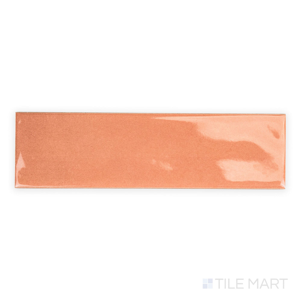 Top-down image of Canvas Orange Peel 3x10 Glossy Ceramic Tile highlighting its bright orange finish and sleek glossy texture across the entire tile.