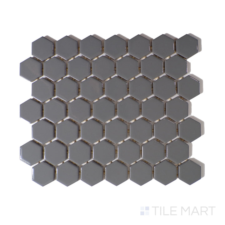 Color Wheel Mosaic Suede Gray 1.5" Hexagon Glossy Glazed Ceramic