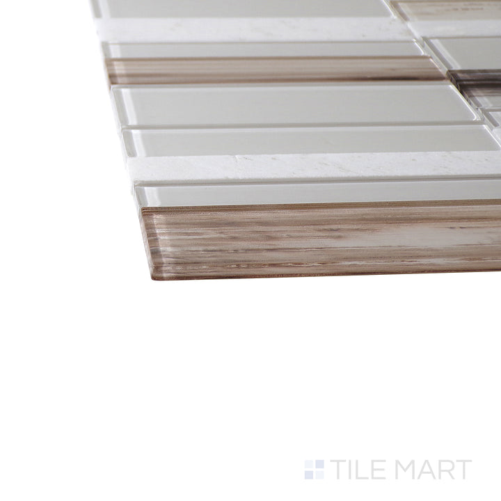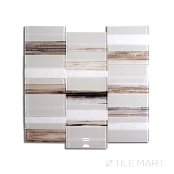 Simplystick Mosaix Daphne White And Glass Blend Polished Marble, Limestone Mosaic