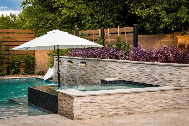 Emphasizing the beauty of WHITE OAK 3D HONED LEDGER CORNER MARBLE PANEL with a HONED finish, adding a touch of warmth and texture to the space.