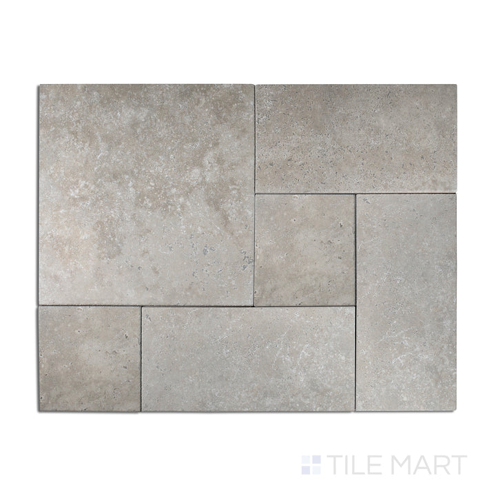 The Grigio tile set from the Jerusalem Stone series adds warmth and sophistication to your space. With its Versailles set contains (2) 8x8, (1) 8x16, (2) 16x16 and (1) 16x24 size and matte finish, this porcelain tile offers a natural stone look, perfect for creating serene, elegant interiors. Suitable for both walls and floors, it enhances the design of any room with its subtle, earthy hue.