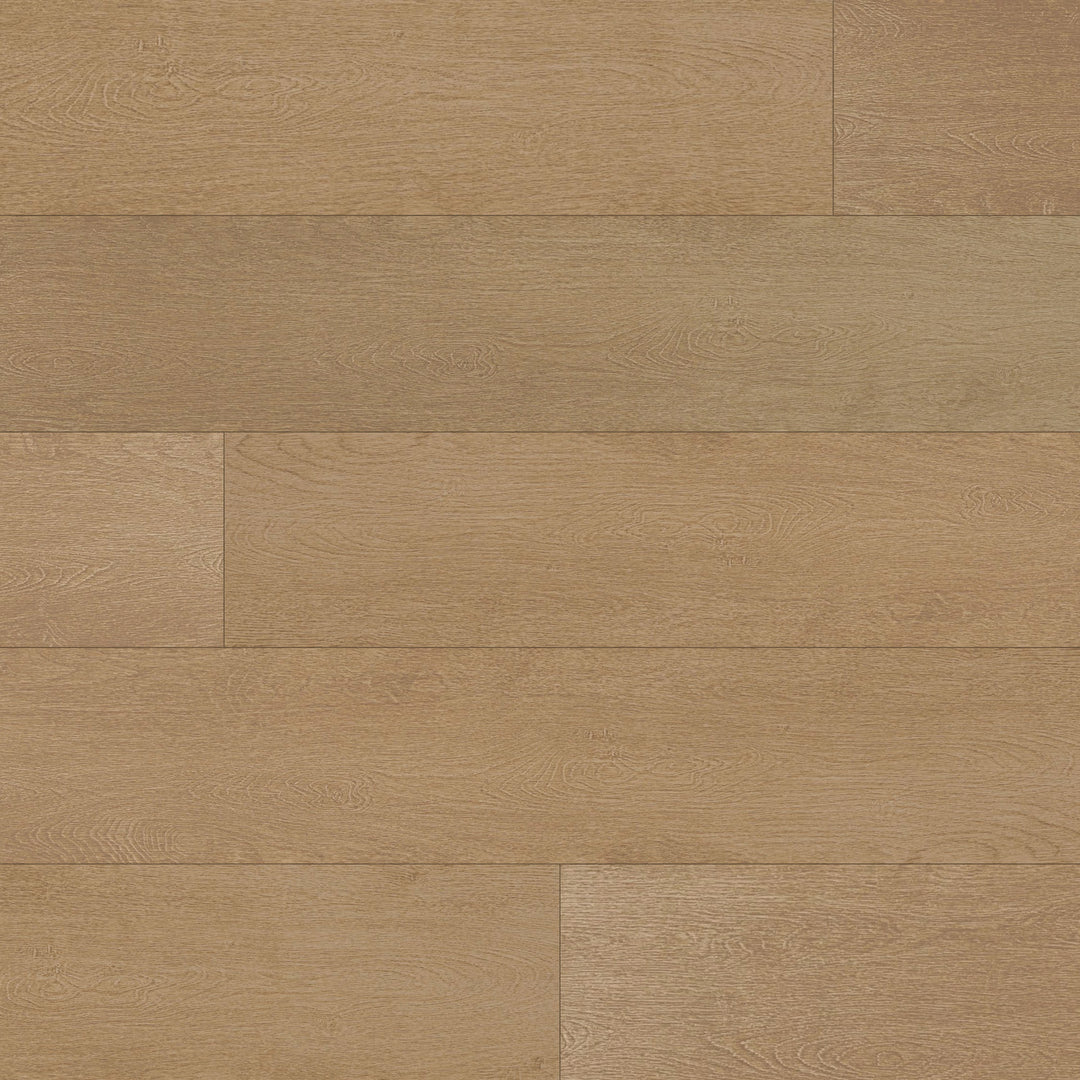 Overhead image of Laguna Cove 9.5x87 engineered hardwood showcasing a soft beige-tan finish with understated wood texture and a matte surface.
