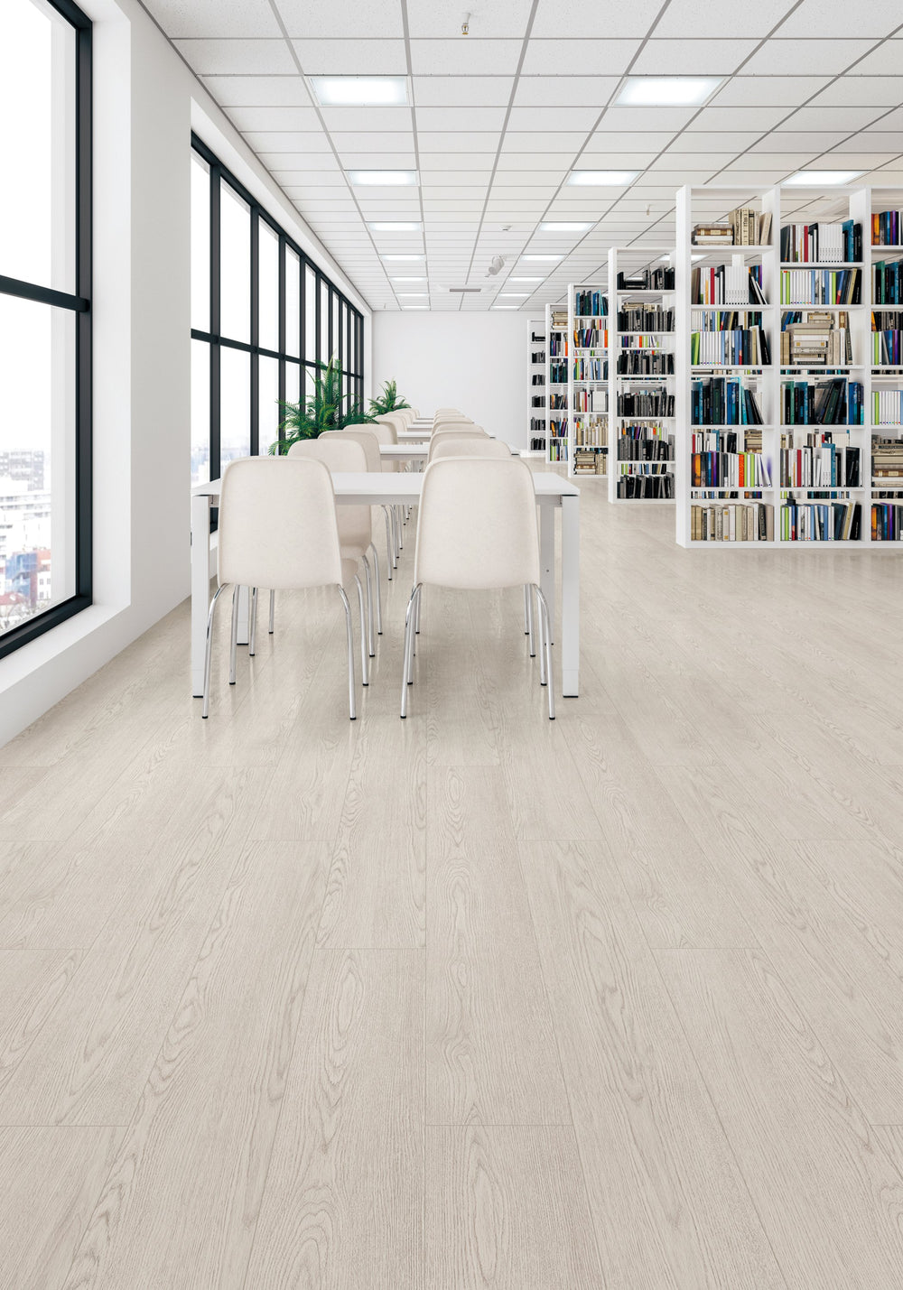Full view of Glenridge Bleached Elm 6x48 low gloss luxury vinyl plank – light wood-look flooring for airy, modern interiors.