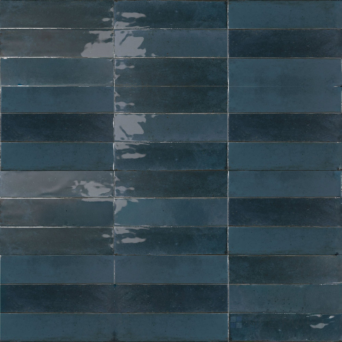 Agadir Lago 3x11 Bright Porcelain tile captures serene lake tones with a glossy sheen that reflects light beautifully. Ideal for feature walls or watery-inspired designs.