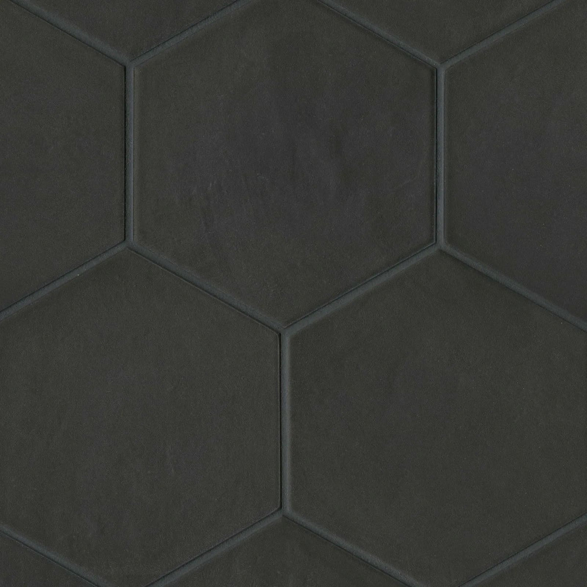 With a geometric 8.5x10 format, Allora Black matte porcelain introduces sharp contrast and a smooth surface that adds character to minimalist or bold designs.