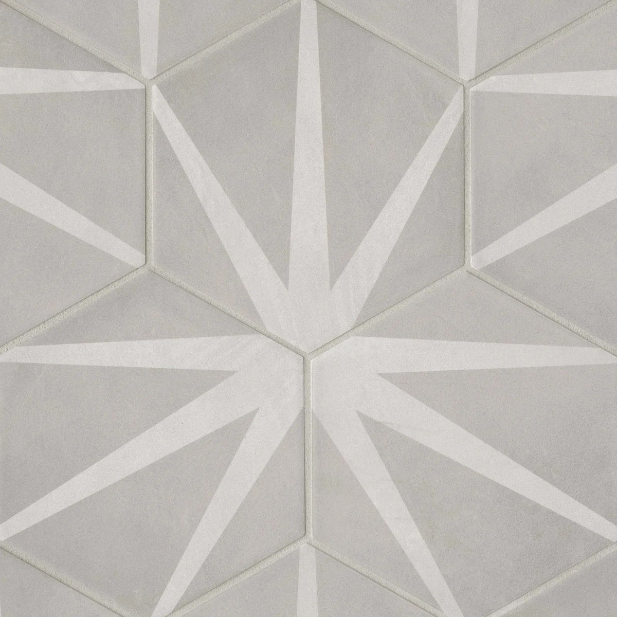 • Viewed from above, the Allora Stella 8.5x10 matte tile reveals a dynamic pattern with a sophisticated finish, making it a standout feature for any space.