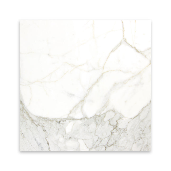 A soft honed texture gives the 18x18 Calacatta Gold marble tile a sophisticated appeal while maintaining a natural stone feel. This format is perfect for balanced floor layouts and elegant open spaces.