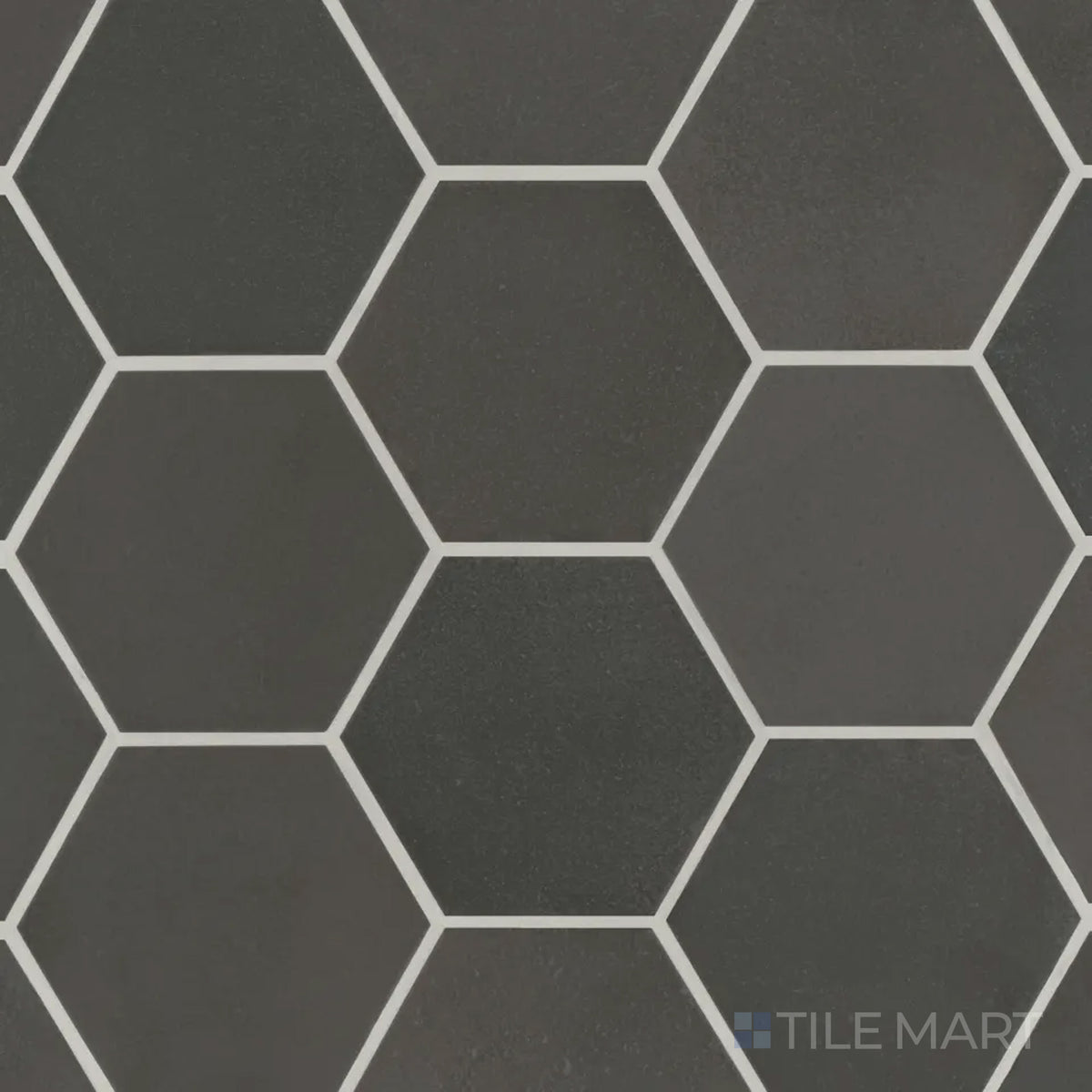 Celine Black 4" hex tile brings bold geometry and a matte finish together, perfect for creating striking accents or grounding patterned layouts.