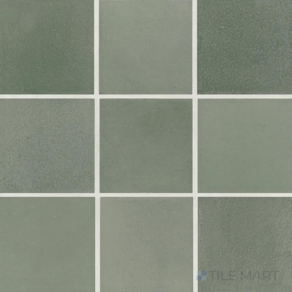 Soft and botanical, Celine Sage in the 4x4 matte finish brings gentle green tones and smooth texture to a classic square layout.