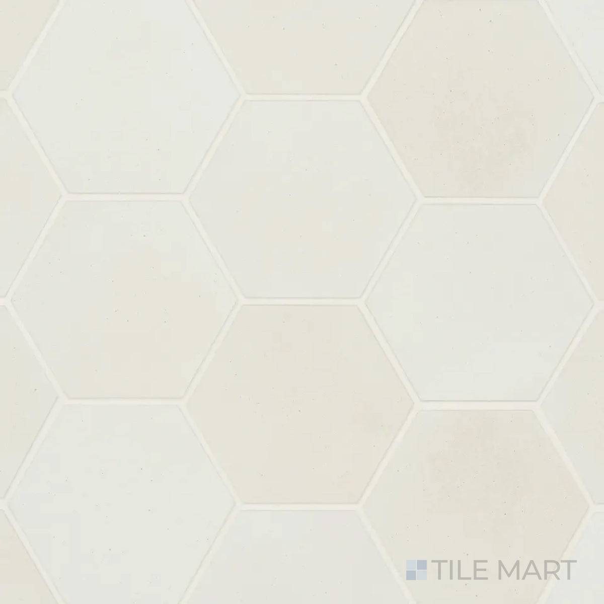 Celine White in matte 4" hex offers clean simplicity with gentle texture—perfect as a backdrop or in contrast with bolder tones.