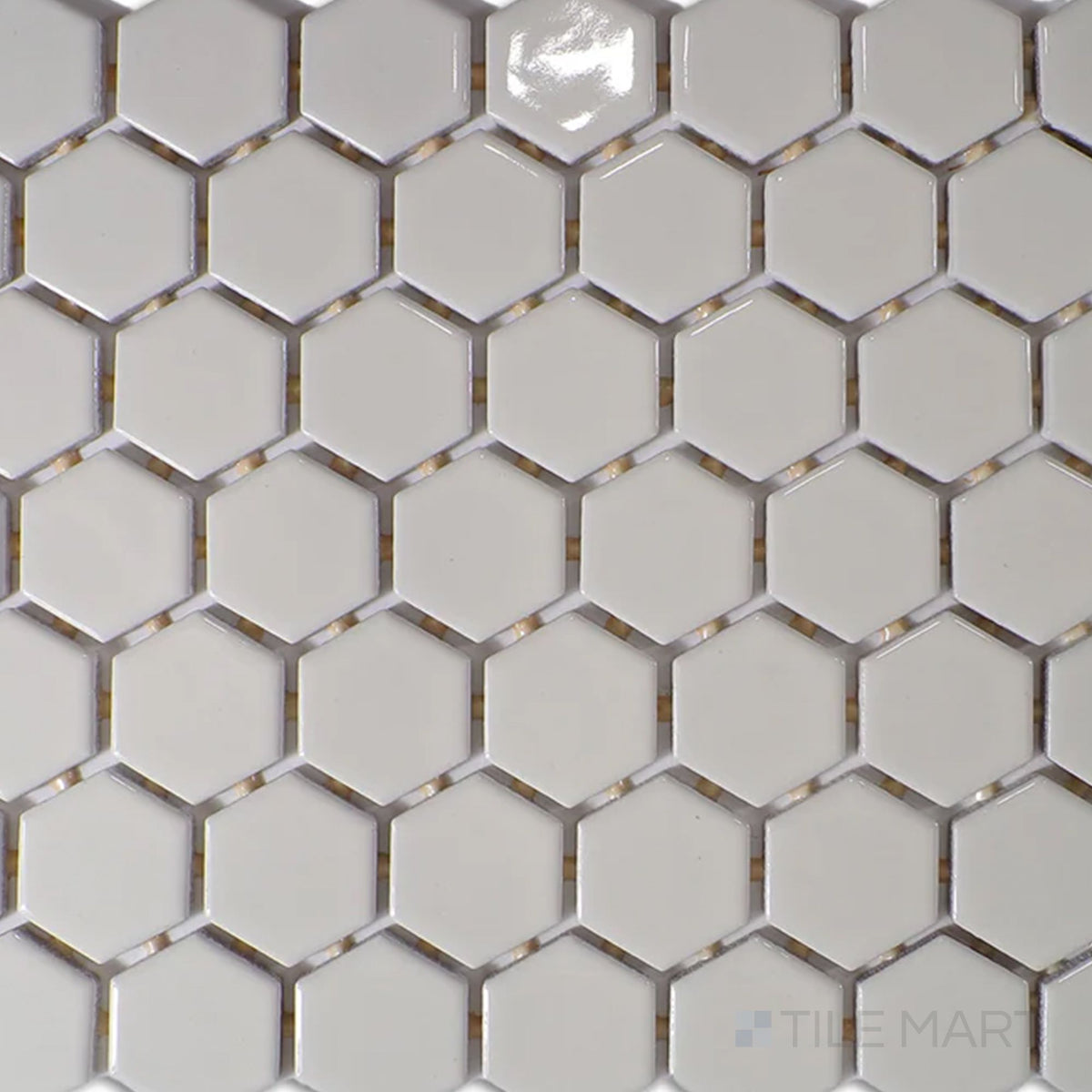 From the Color Wheel Mosaic series, this glossy biscuit-hued hex tile brings subtle warmth and vintage charm in a 1.5" format.