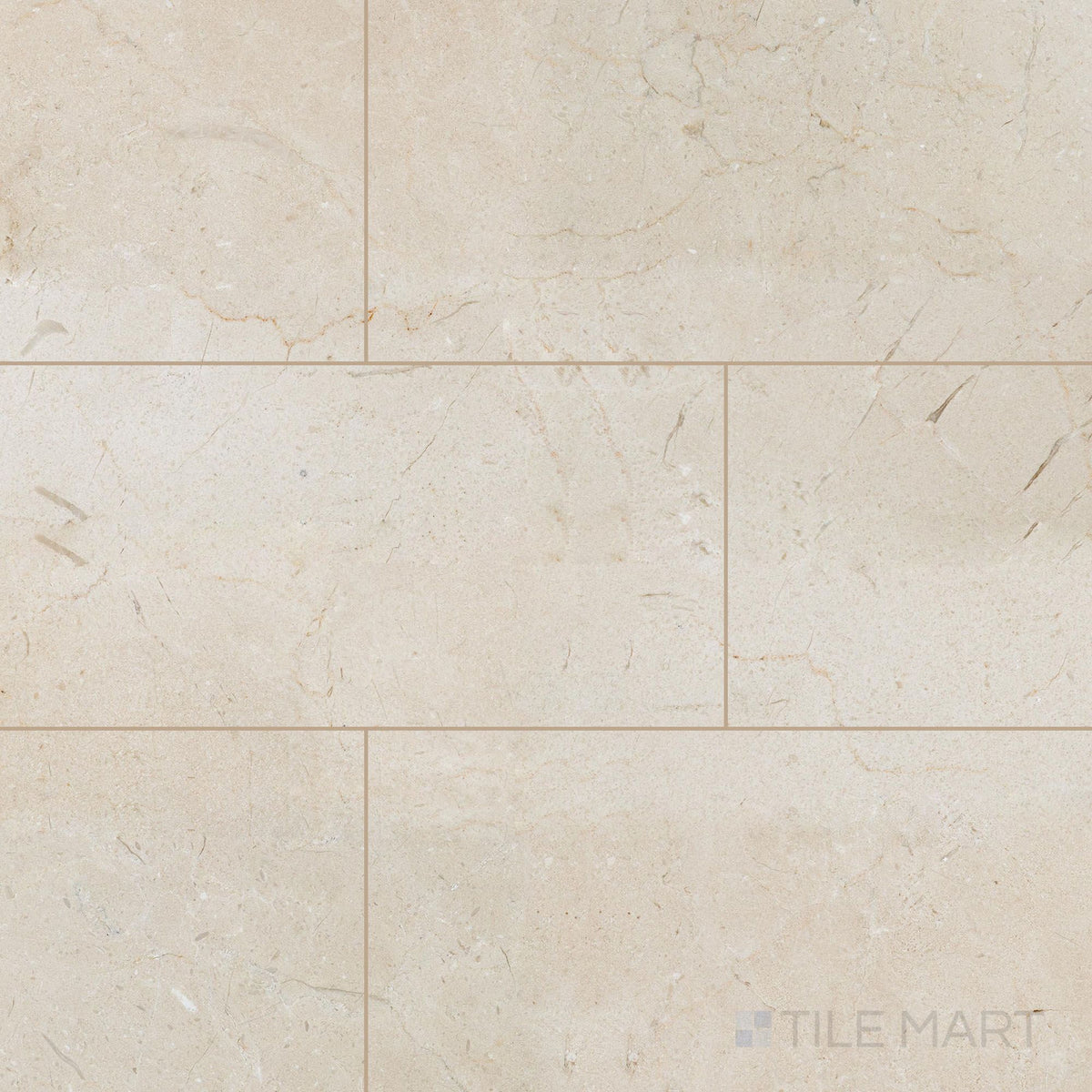 Perfect for large-format installations, Crema Marfil Select 12x24 honed marble tile offers a soft, natural appearance with minimal grout lines. Its smooth surface provides a contemporary feel, ideal for spacious interiors.
