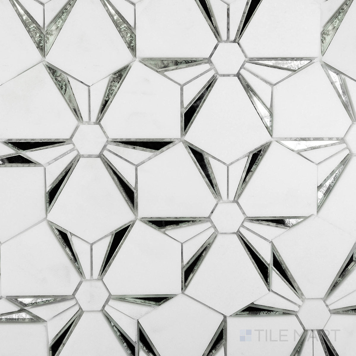 Dazzle Silver Kaleidoscope Polished Thassos, Glass Mosaic