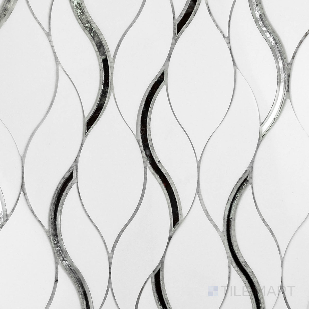 Dazzle Silver Symmetry Polished Thassos, Glass Mosaic