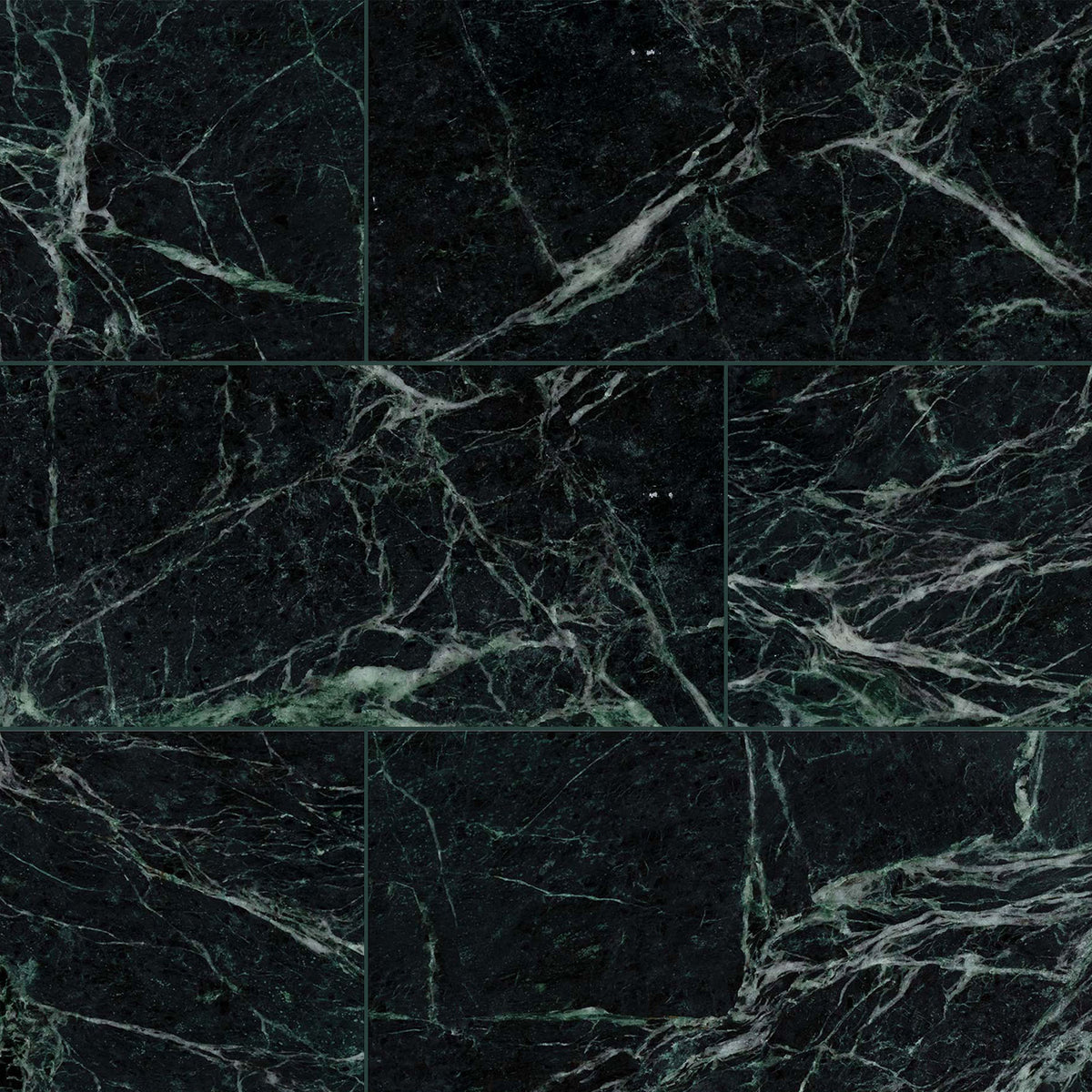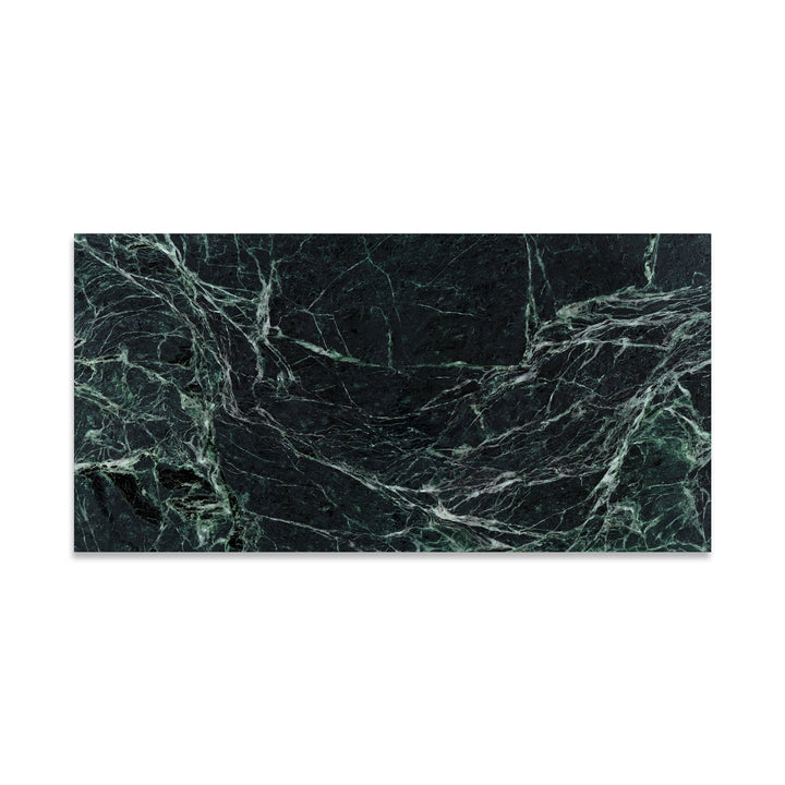 A large-format design gives the 12x24 polished Empress Green marble tile a dramatic and seamless look. The deep green tones and high-gloss finish add elegance and sophistication, making it ideal for grand flooring, accent walls, and upscale interiors.