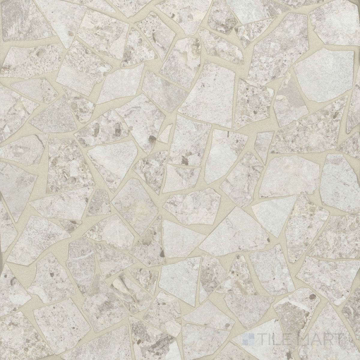 Frammenta White Palladiana Matte Mosaic features a classic broken stone pattern in a bright, modern finish. Perfect for shower floors, backsplashes, and decorative accents.