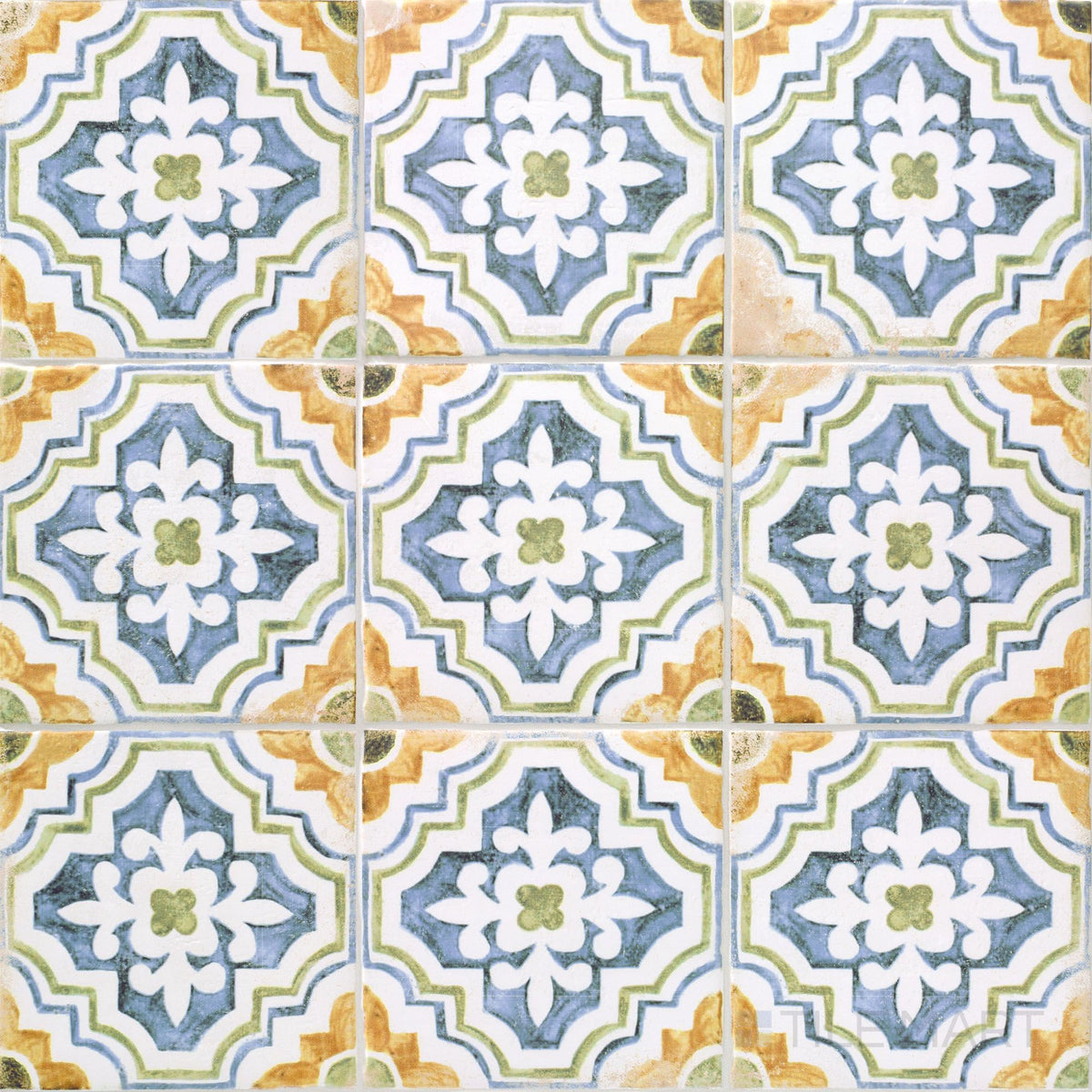 Add character with Fuego Huella Deco 9x9, a matte porcelain tile that blends traditional pattern with organic surface appeal.