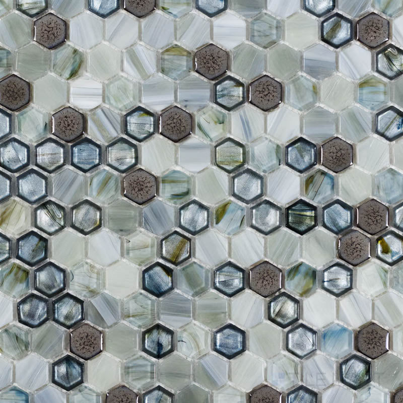 The Brocade Lagoon Mosaic Tile from the Glassique series by Anthology Tiles features a captivating hexagon pattern in a vibrant blue color. With a glossy finish, this modern and contemporary tile is ideal for adding visual interest to walls, floors, backsplashes, and fireplaces. Its versatile application makes it an excellent choice for both residential and commercial spaces.