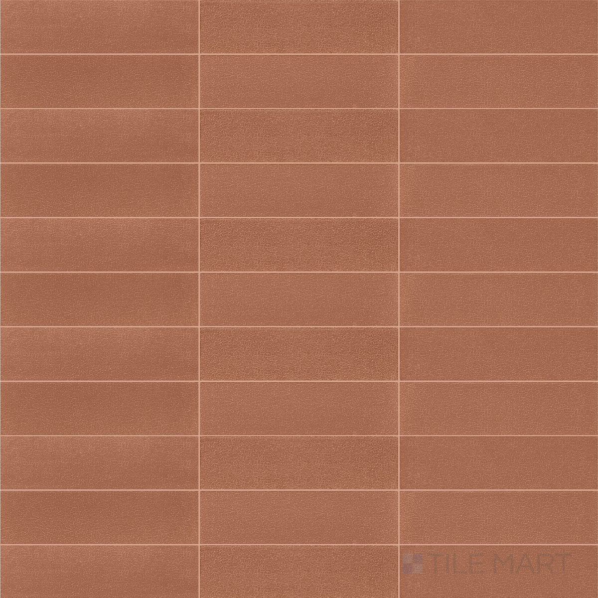 A rich ember tone with a satin finish brings warmth and depth, creating a refined look in this Inyo Ember 2x8 glazed ceramic tile.