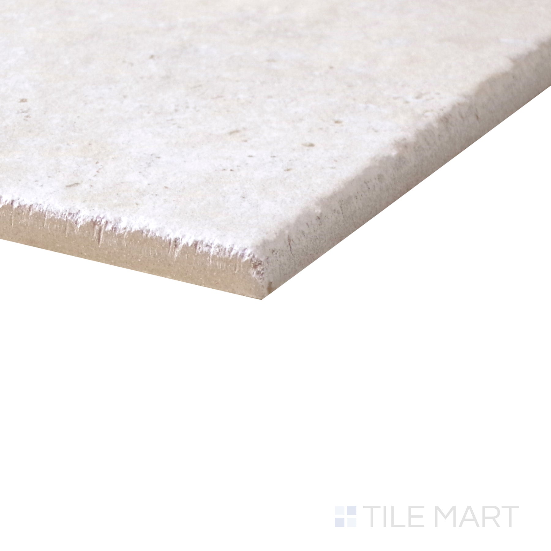 • Corner shot of Jerusalem Avorio matte porcelain tile in Versailles pattern, soft beige stone-look finish.