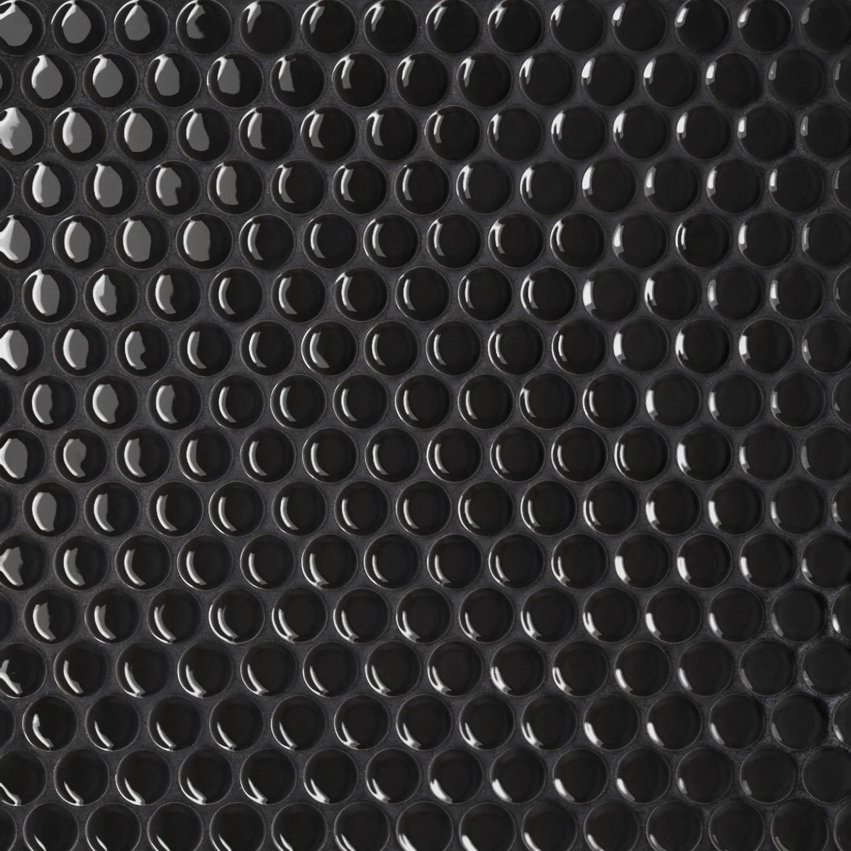 Sleek and striking, Le Café Black 3/4" Penny Round gloss mosaic enhances retro layouts with polished shine and deep color.
