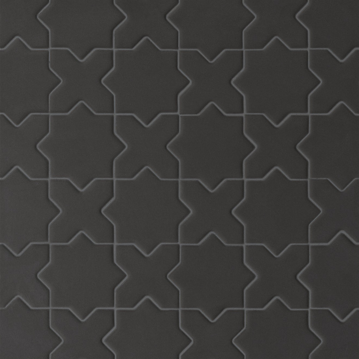 Le Café Black Cross & Star matte mosaic showcases striking silhouettes in a bold layout, softened by a smooth matte glaze.