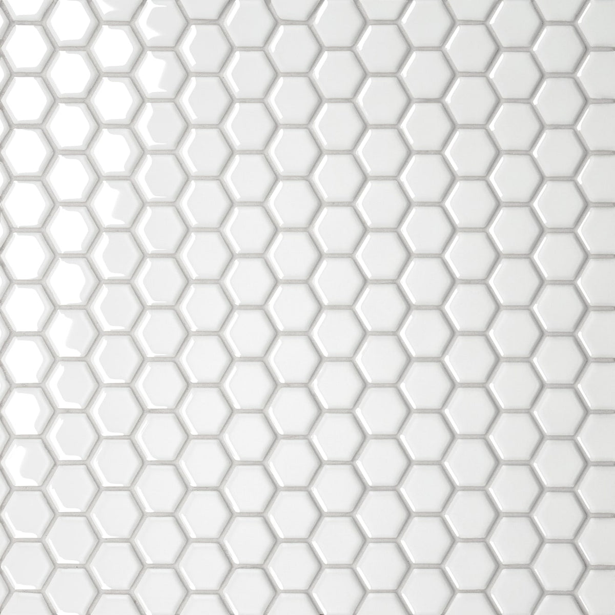 Le Café White 1" Hexagon Gloss Glazed Porcelain Mosaic