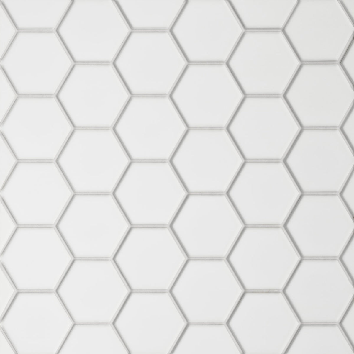 Le Café White 2" matte hexagon mosaic delivers a clean, soft-glazed look with timeless charm in a larger small-format style.