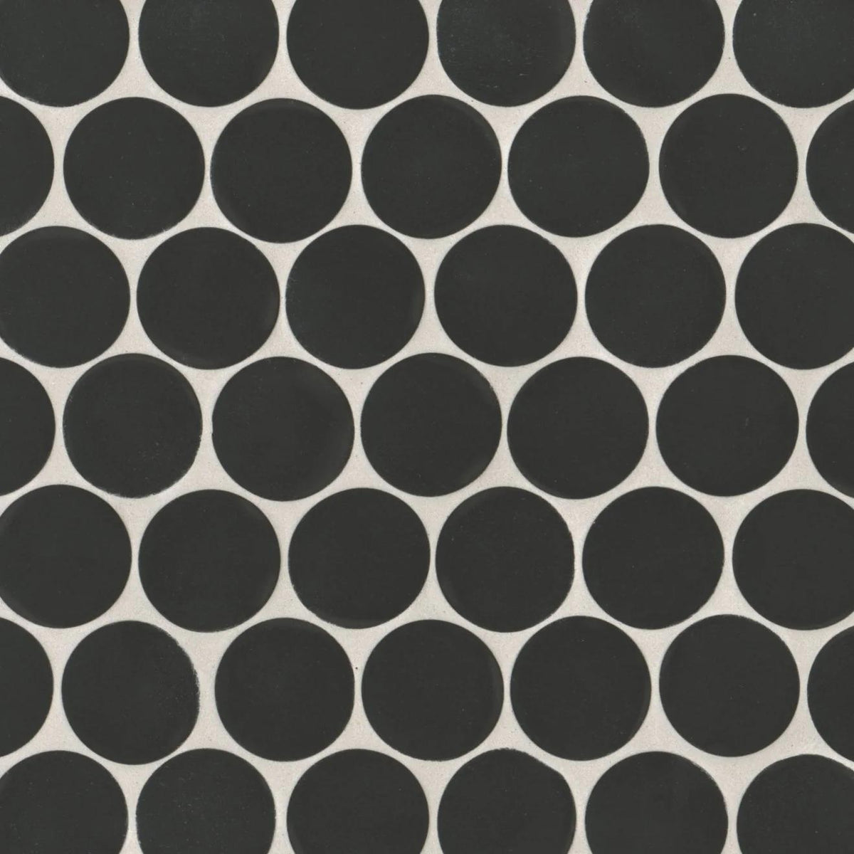 Makoto Kuroi Black 2" round mosaic tile makes a bold statement with its rich matte finish and timeless penny round shape.