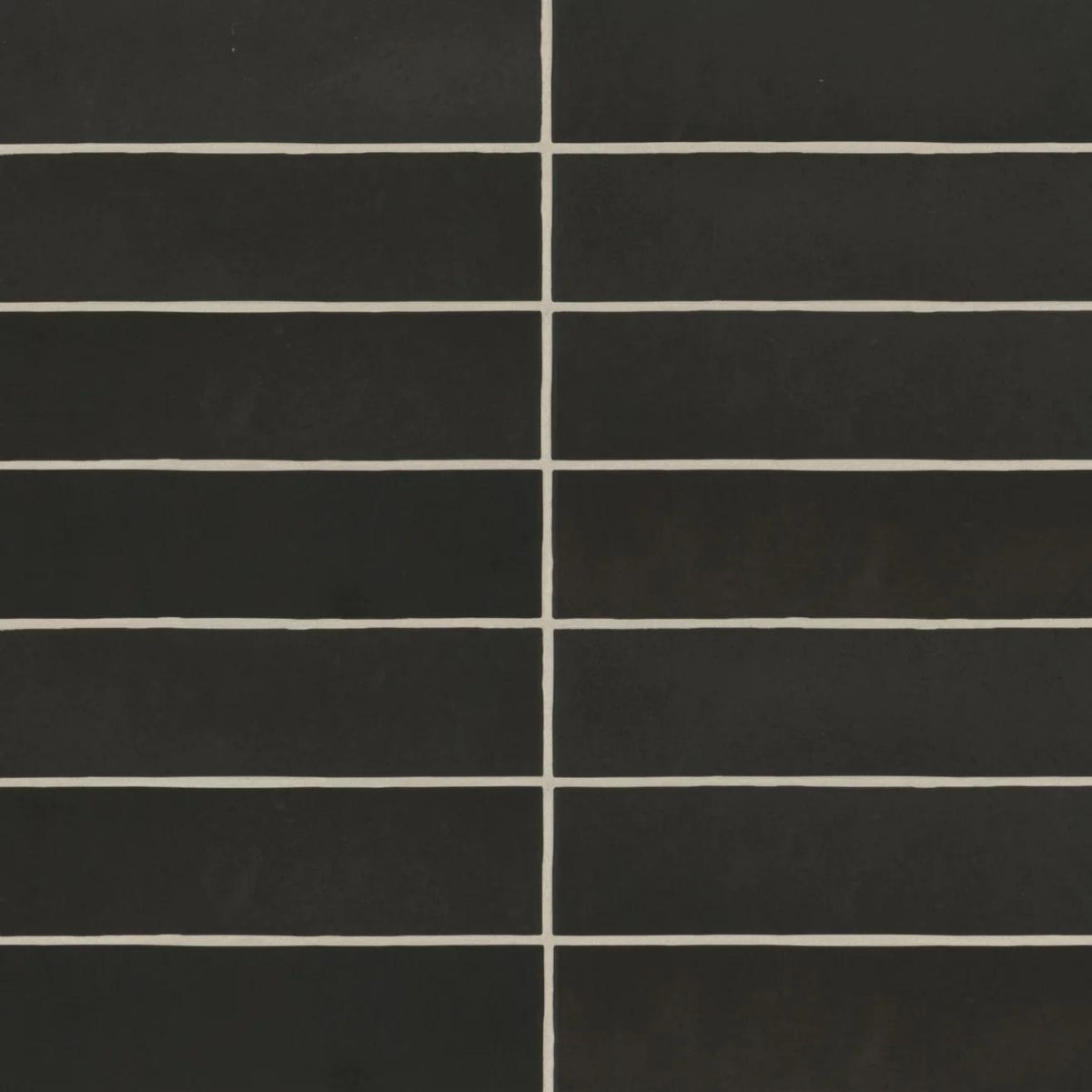Makoto Kuroi Black 2.5x10 matte tile offers bold contrast and timeless appeal, ideal for sleek, dramatic installations.