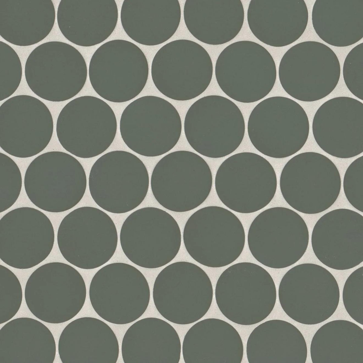 Makoto Midori Green 2" round mosaic tile offers earthy tranquility in a soft, nature-inspired tone with a handcrafted matte finish.