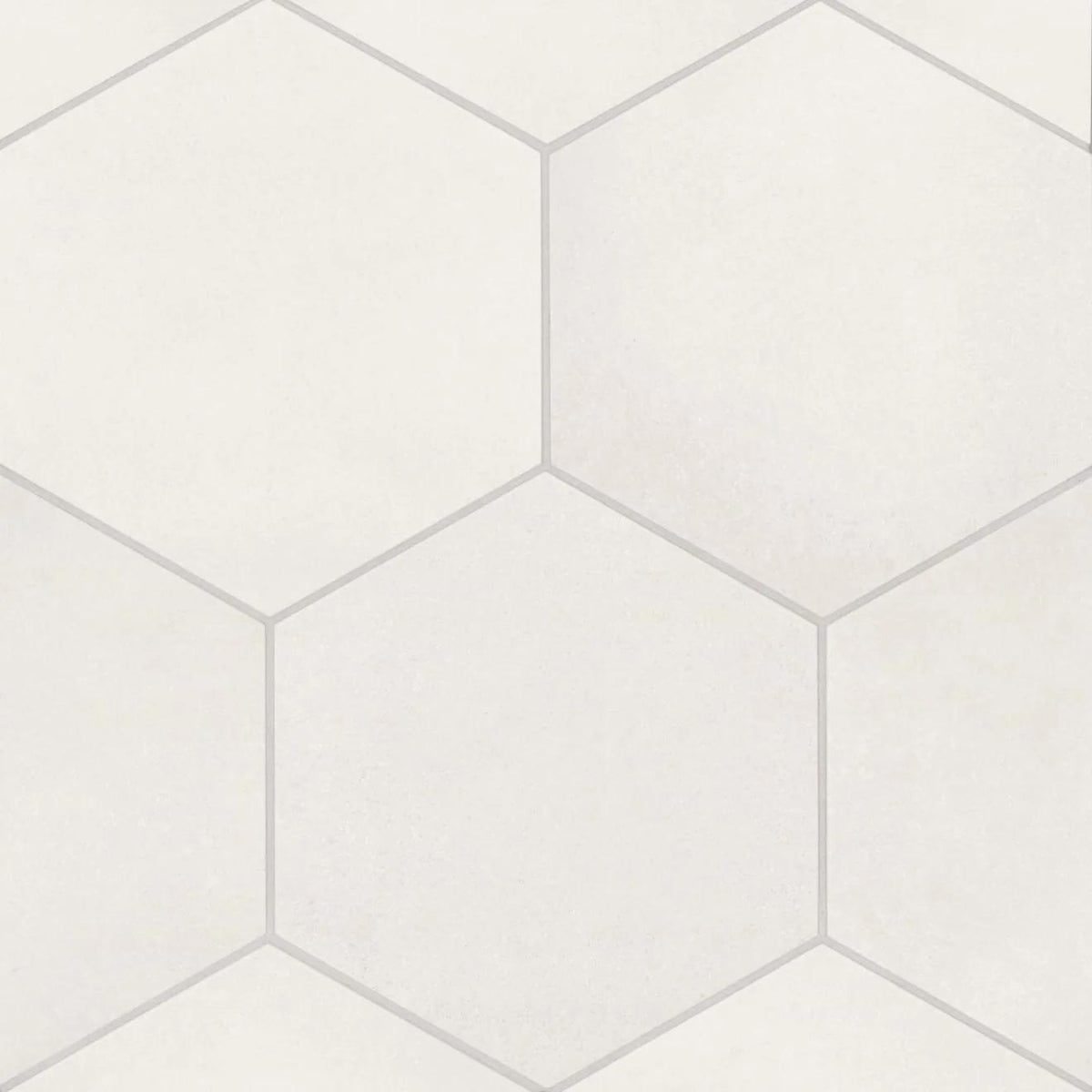 Makoto Shoji White 10" hex matte tile blends modern geometry with a soft white tone, perfect for clean, structured designs.