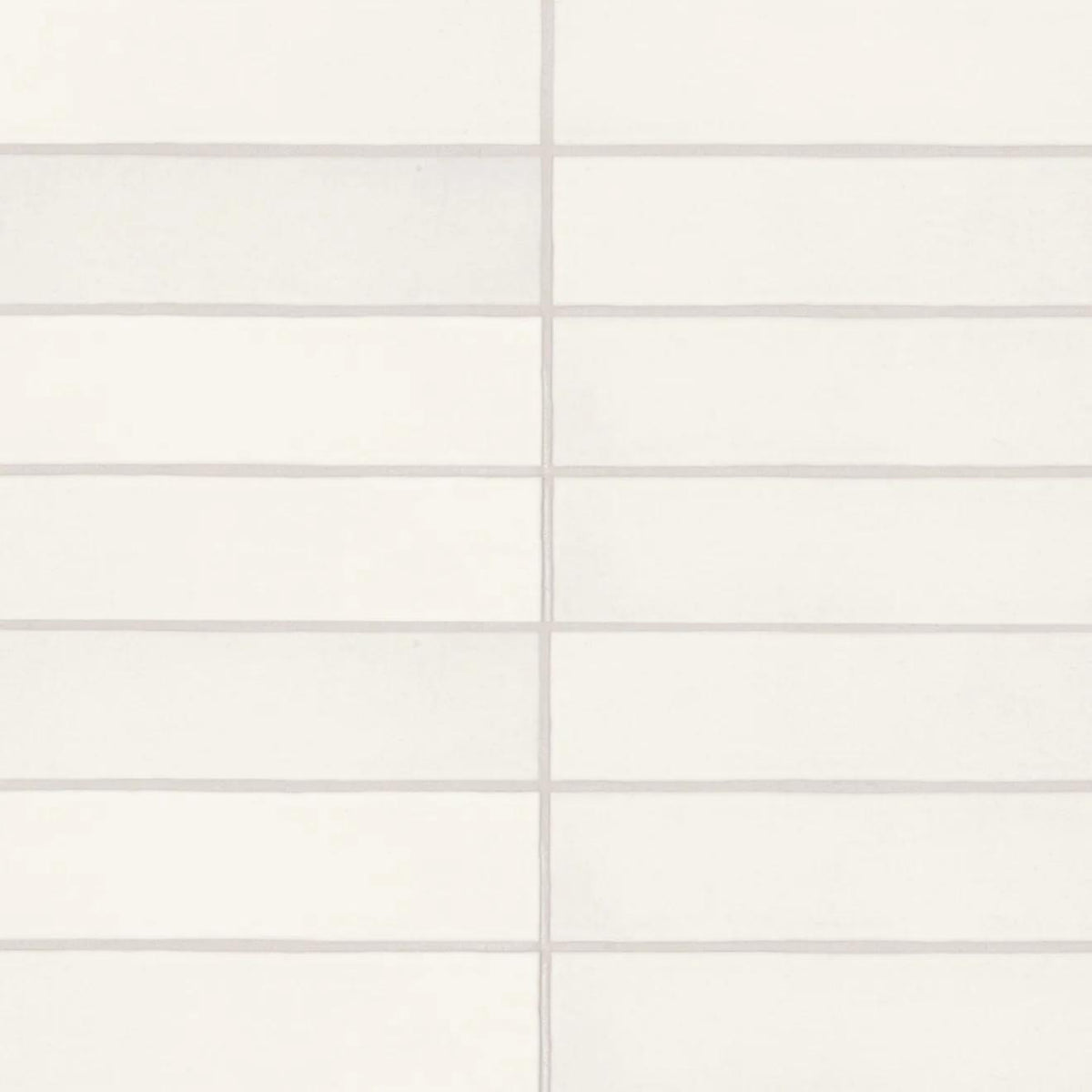 • A crisp close-up shot of Makoto Shoji White 2.5X10 Matte Ceramic tile highlights its soft white tone and smooth, matte surface, perfect for serene, minimalist spaces.
