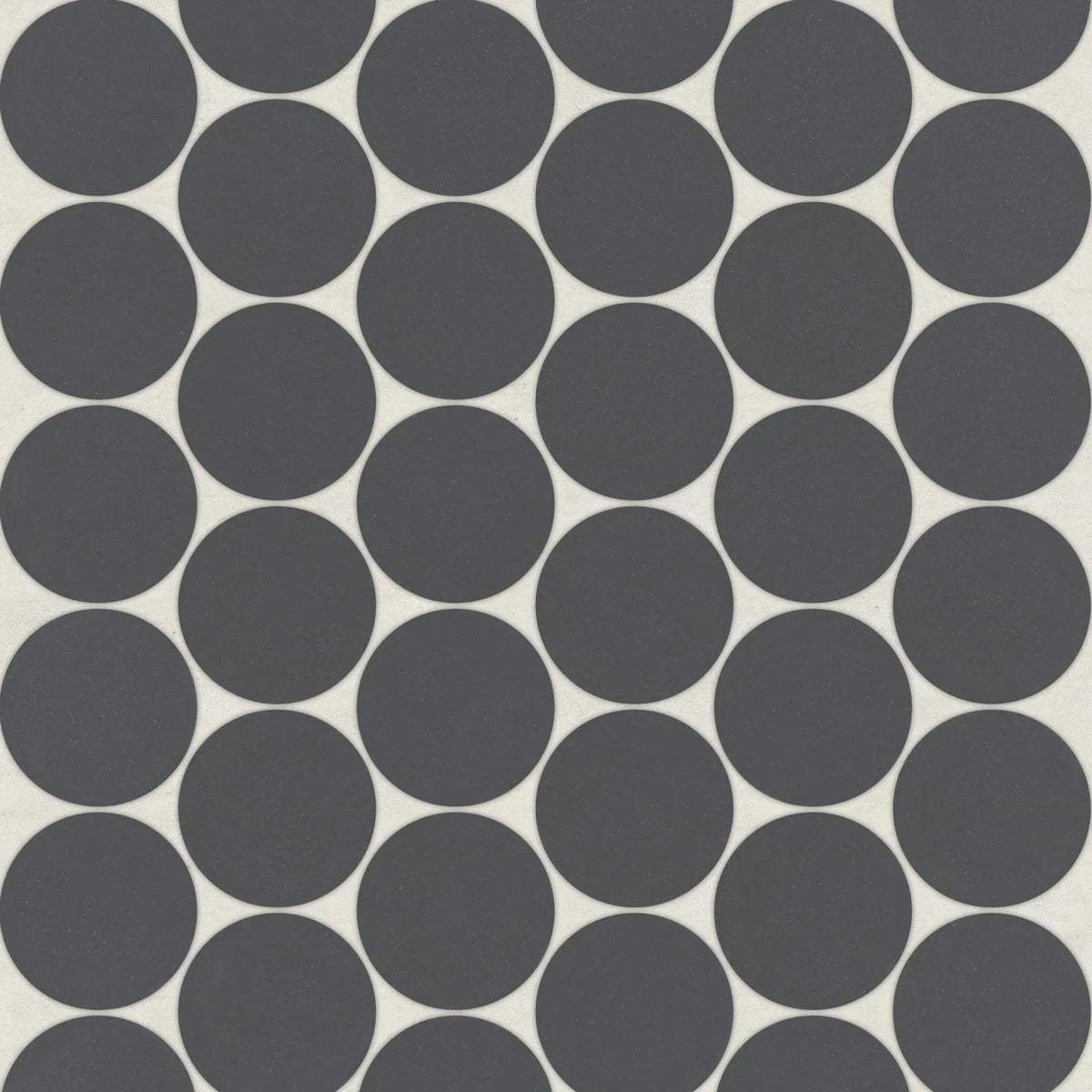 Bold and timeless, Marin Black Sea 2" penny round tile makes a striking impression with its deep black hue and soft porcelain finish.