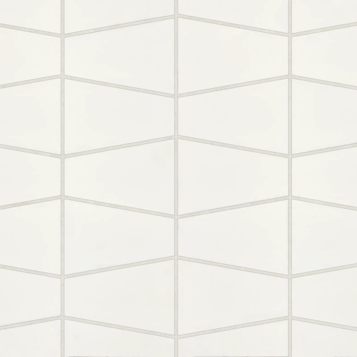 Marin Pearl White trapezoid tile delivers quiet sophistication, blending clean white tones and artisan character in a contemporary shape.