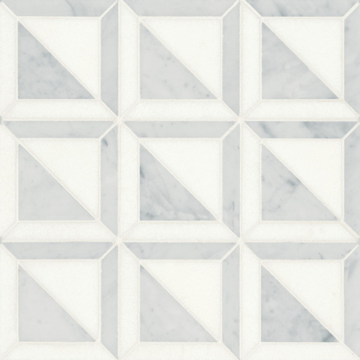 Minimal yet elegant, Matisse Carrara & Thassos Honed Mosaic brings refined symmetry with soft honed surfaces and pure white detail.