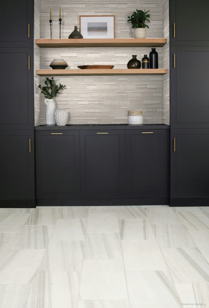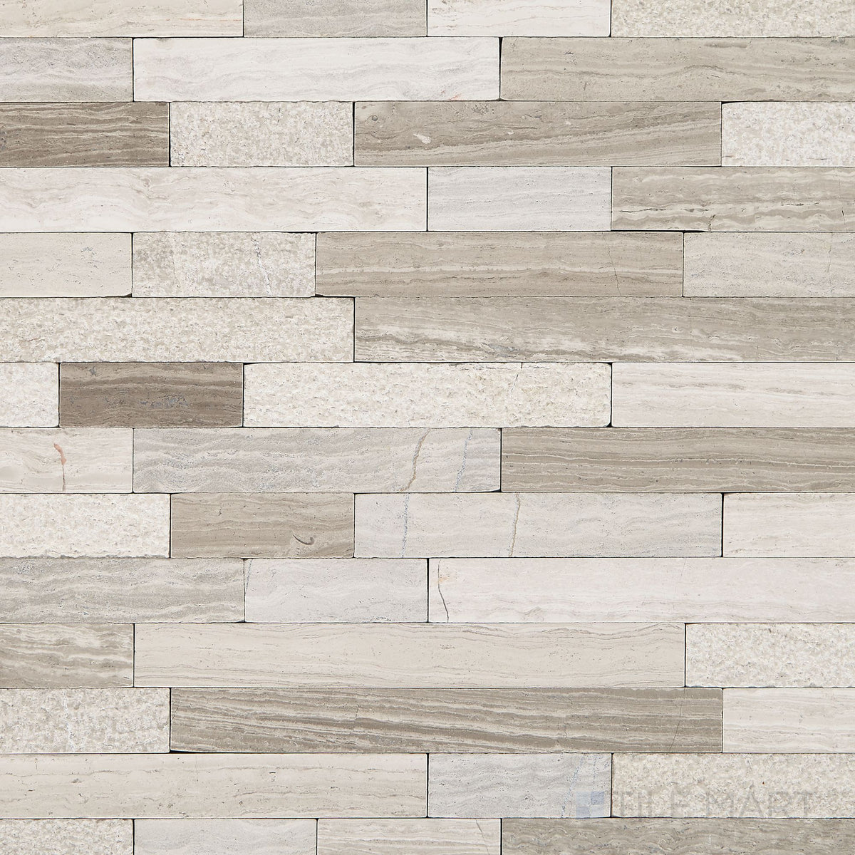 For a modern take on natural stone, choose Minute Mosaix Chenille White in a random linear marble and limestone format—elegant and eye-catching.