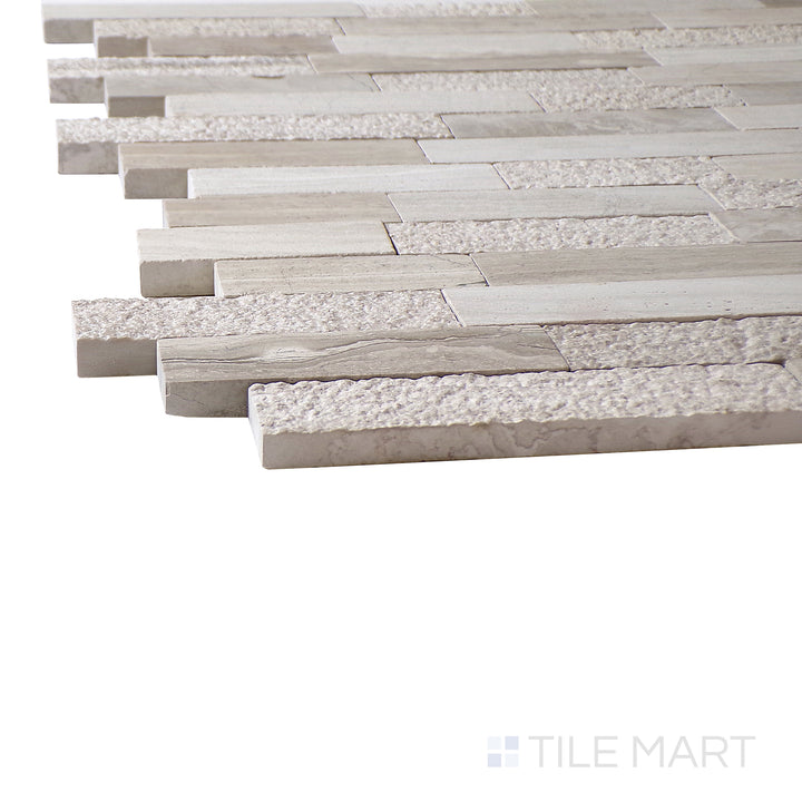 Minute Mosaix Chenille White Random Linear Marble, Limestone Mosaic