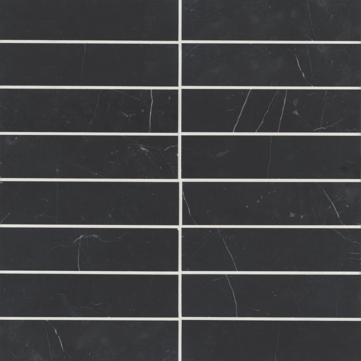 For a bold, dramatic look, Monet Nero Marquina 2x8 Honed Marble delivers rich black tones and striking white veining in a sleek, honed finish.