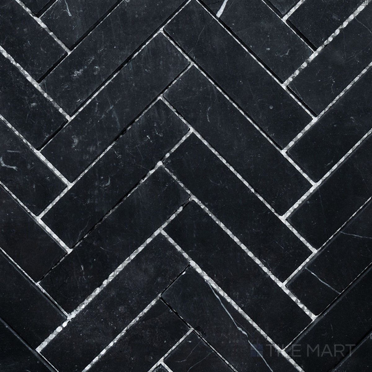 Negro Marquina Marble 1X4 Herringbone Honed Mosaic