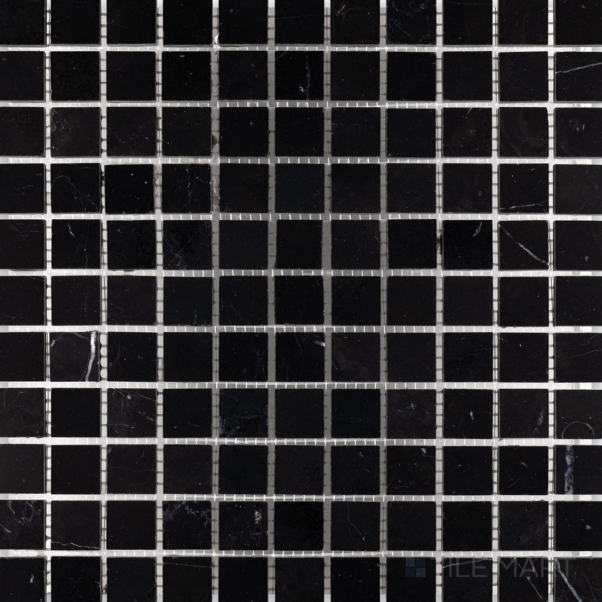 The Negro Marquina Mosaic in honed finish emphasizes bold simplicity. Its 1" Square layout and 12x12 proportions bring a balanced and sophisticated texture to surfaces.