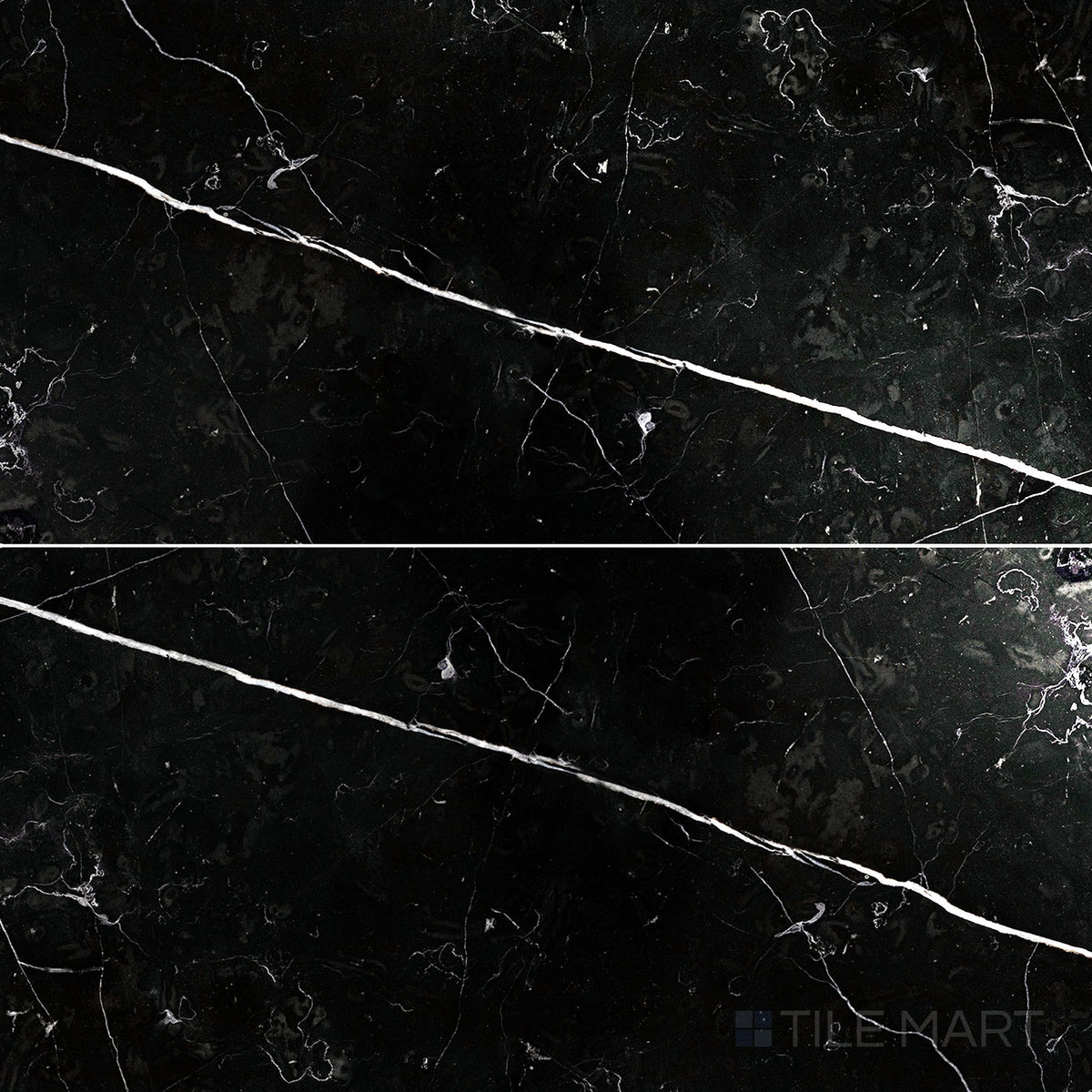 The Negro Marquina Marble in polished finish exudes luxury with its sleek surface. Its 12x24 layout is perfect for creating seamless, contemporary interiors.