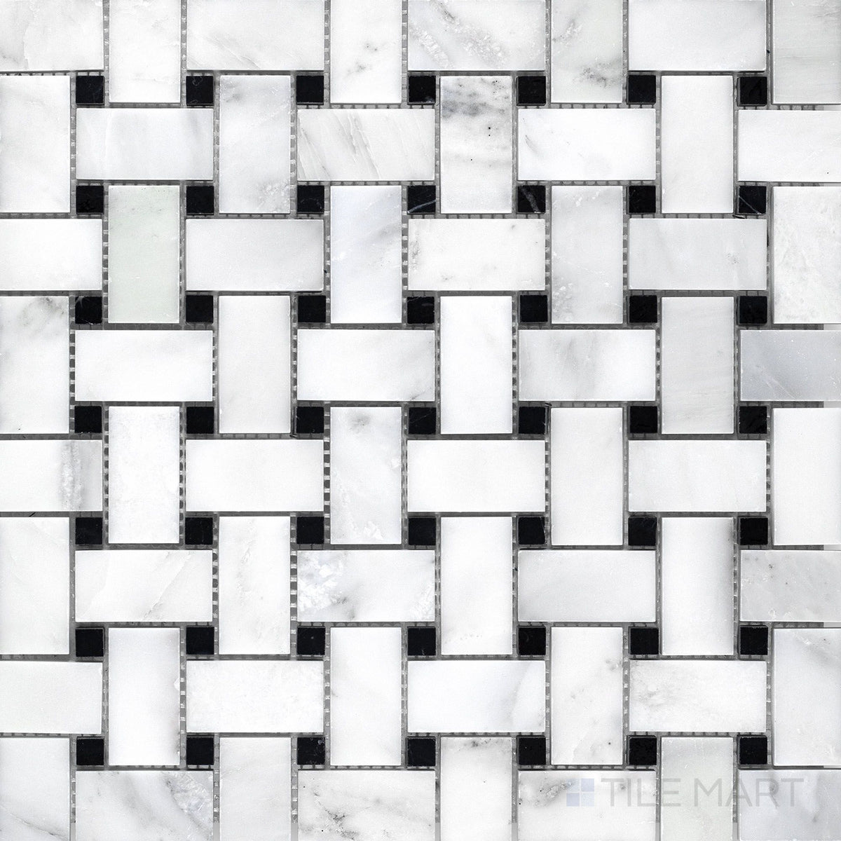Oriental White Marble Basketweave W/ Black Dot Honed Mosaic