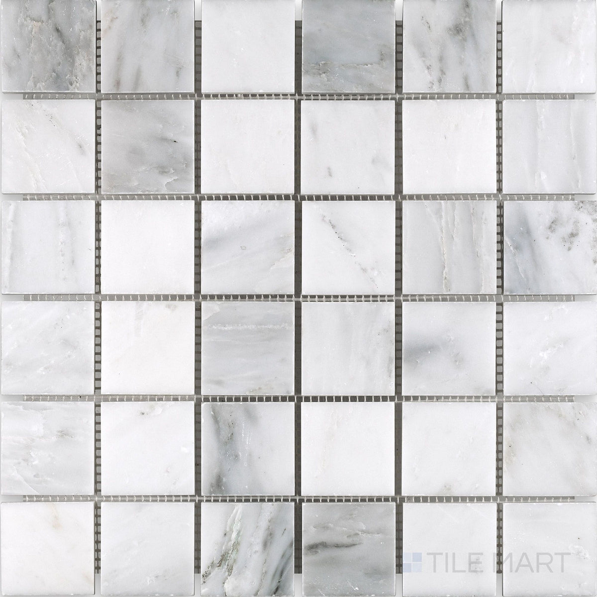 The Marble Oriental White Mosaic in honed finish showcases the beauty of understated textures. Its 2" Square layout and 12x12 size create a structured, symmetrical look, perfect for both traditional and modern designs.