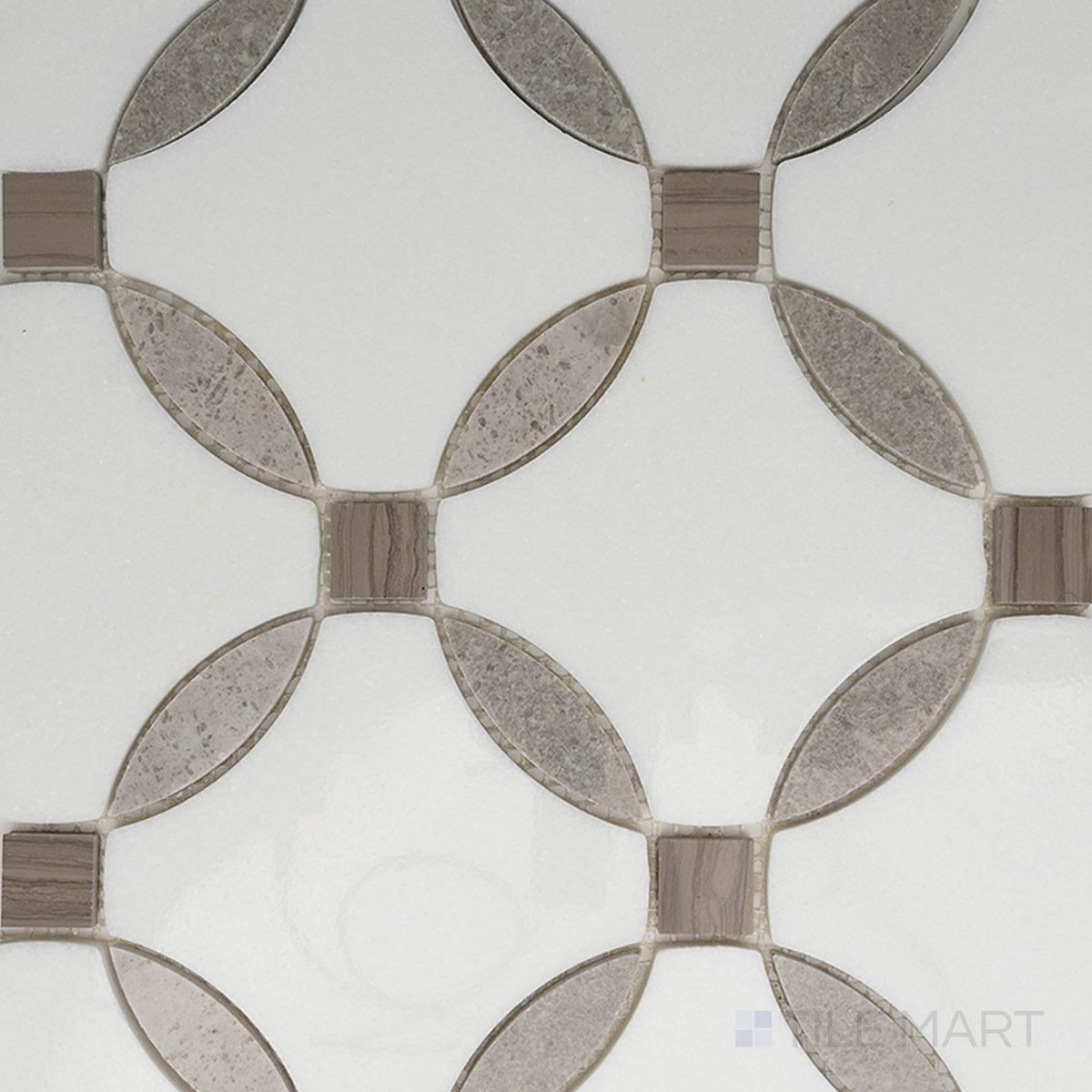 Bring a touch of elegance to your space with the Bavarian Lace Beige and White Mosaic Tile from the Panache collection by Anthology Tiles. This stone tile, with a polished finish and intricate waterjet pattern in beige and white, is perfect for enhancing walls, floors, showers, backsplashes, and fireplaces. Its classic and trendy design makes it suitable for both residential and commercial applications, adding a timeless beauty to any setting.