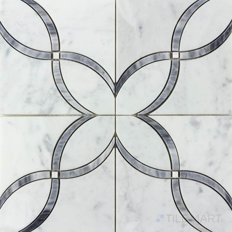 The Lotus Parc Gray and White Mosaic Tile from the Panache collection by Anthology Tiles brings a sophisticated touch to any space. This polished stone tile features an elegant waterjet pattern in gray and white, making it ideal for walls, floors, showers, backsplashes, and fireplaces. Suitable for both residential and commercial projects, it adds a timeless elegance to any setting.