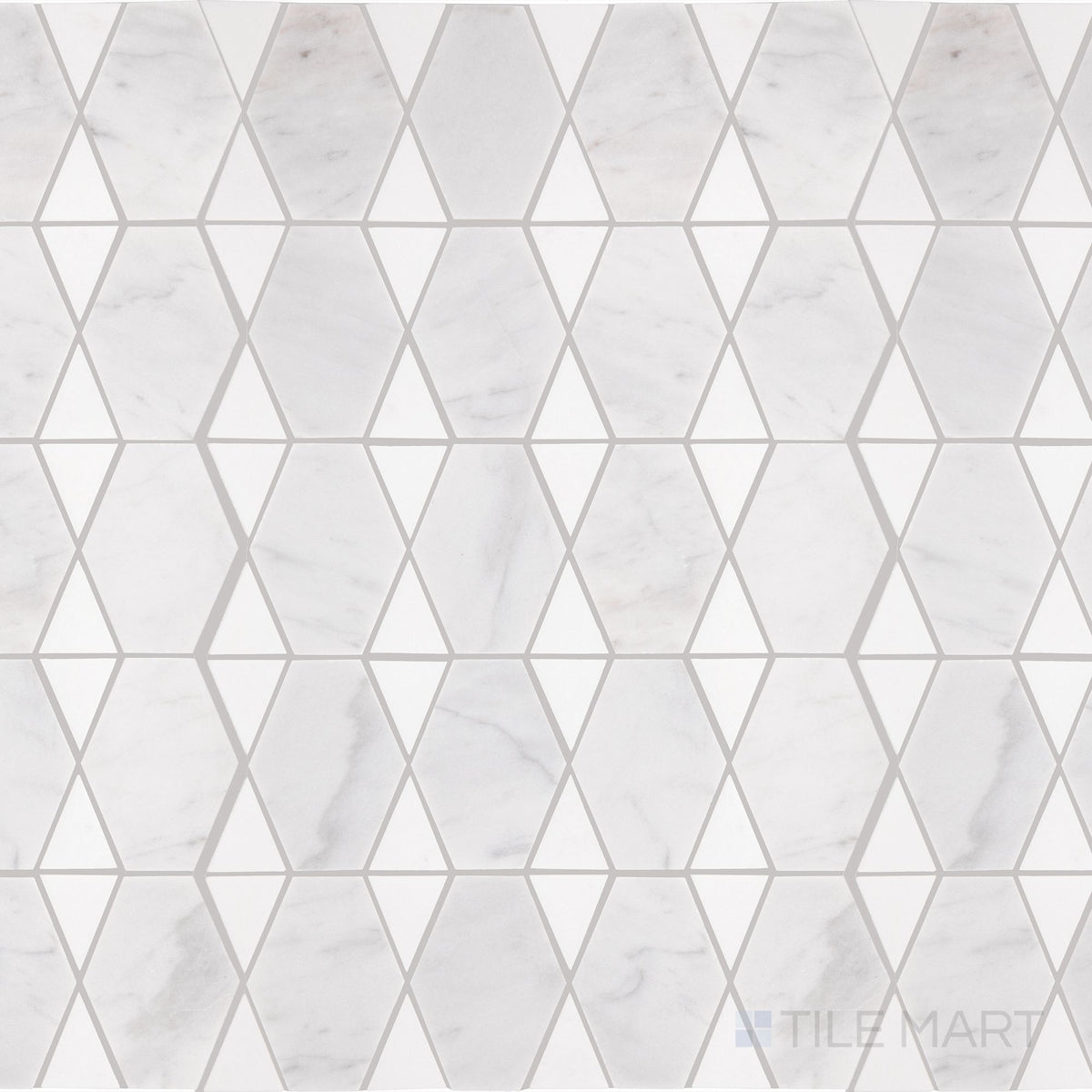 Perfit Mosaix Reverse Mosaic blends Saran White and Thassos for a striking polished pattern—ideal for upscale modern backsplashes or accent walls.