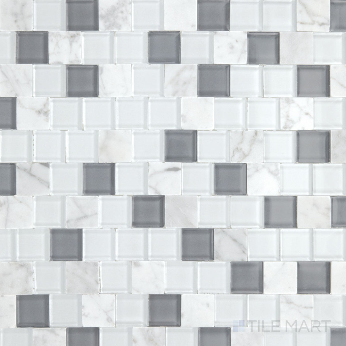 Perfit Mosaix White Carrara & Glass 1" Offset Polished Carrara Mosaic